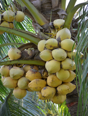 • El progenitor femenino es el cocotero enano malayo amarillo.